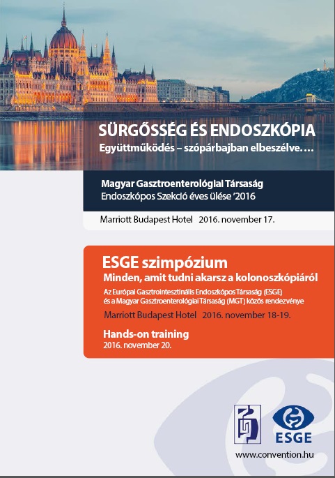 Nagy megtiszteltetés, hogy 2016 őszén a Marriott Budapest Hotelben társaságunk Endoszkópos Szekciójának éves ülését együtt szervezhetjük a European Society of Gastrointestinal Endoscopy (ESGE) szimpóziumával. Hagyományos éves szekcióülésünket - melyet csütörtökön rendezünk - követi a másfél napos európai szakmai fórum.